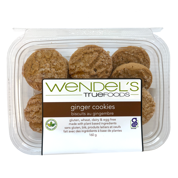 Sugars (organic brown sugar (organic raw cane sugar, organic molasses), molasses, organic cane sugar, cane sugar), Organic palm oil, White rice flour, Potato starch, Water, Soy flour, Brown rice flour, Corn starch, Organic ginger pulp (organic ginger, organic cane sugar), Organic crystallized ginger (organic ginger, organic cane sugar), Baking powder, Sea salt, Chia seeds, Ginger, Baking soda, Cinnamon.