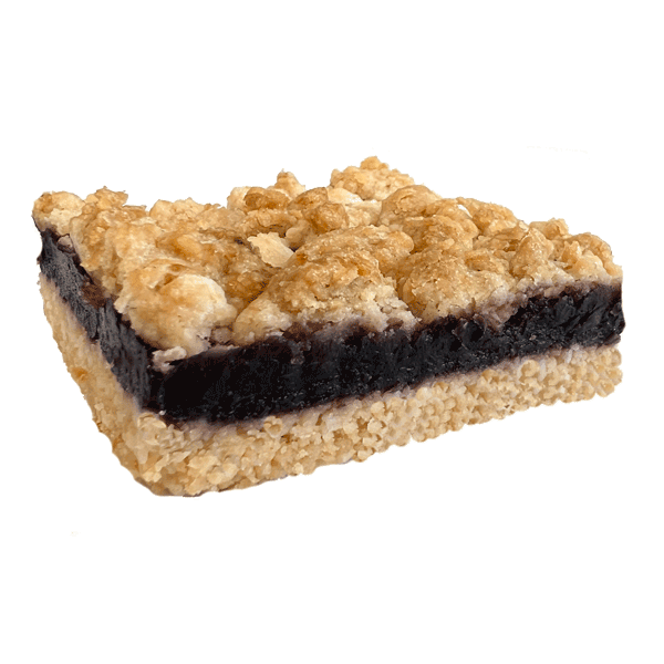 Crumble base filled with a raspberry, blueberry, and blackberry compote, finished with a golden crumble topping.